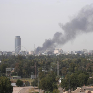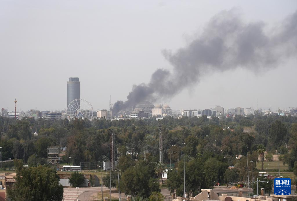 3月21日,位于伊拉克首都巴格达曼苏尔区的巴格达国际会展中心附近升起浓烟。