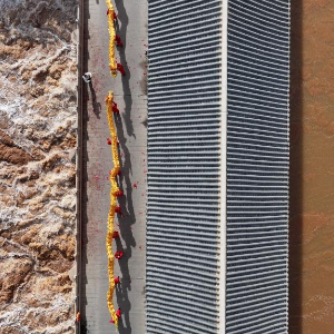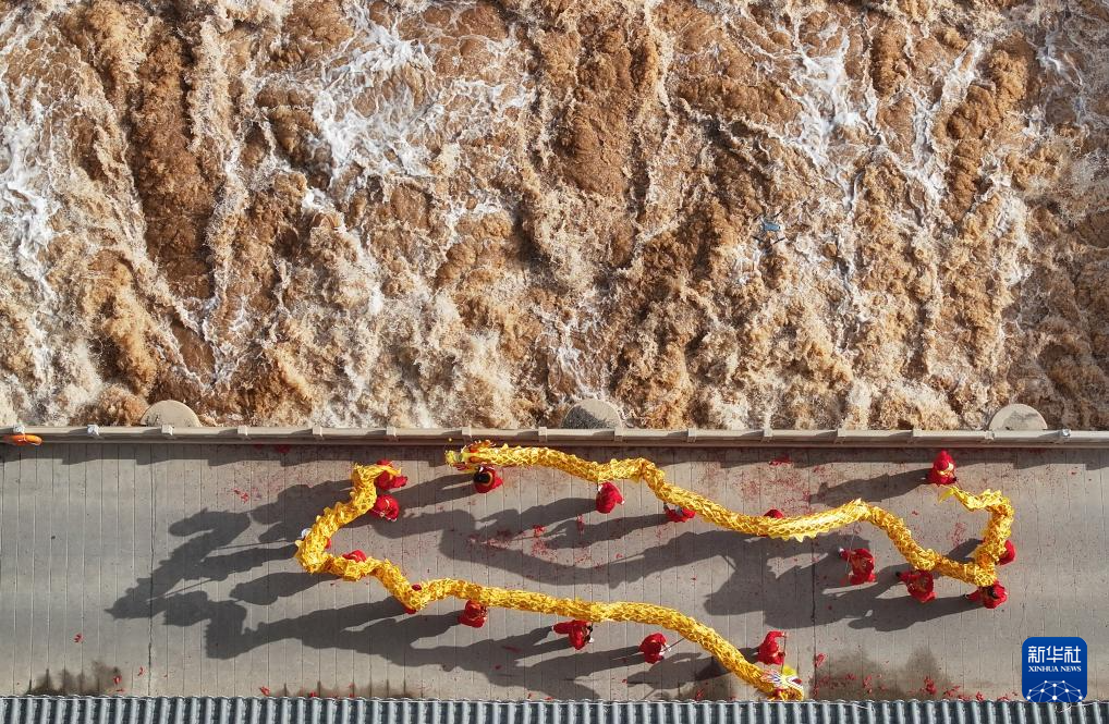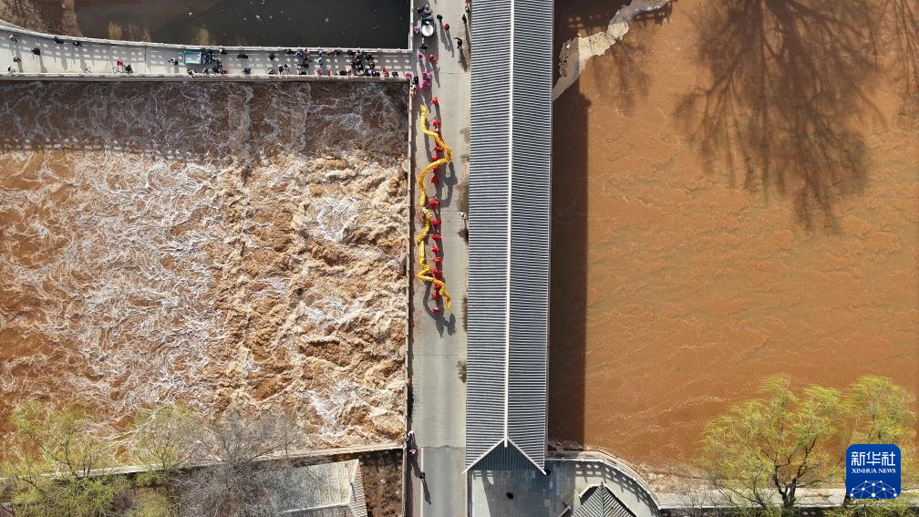 3月24日,位于青铜峡市的唐正闸开闸放水(无人机照片)。