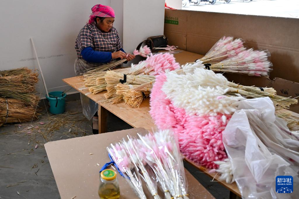 3月25日,一名工人在以礼街道一家干花加工车间作业。