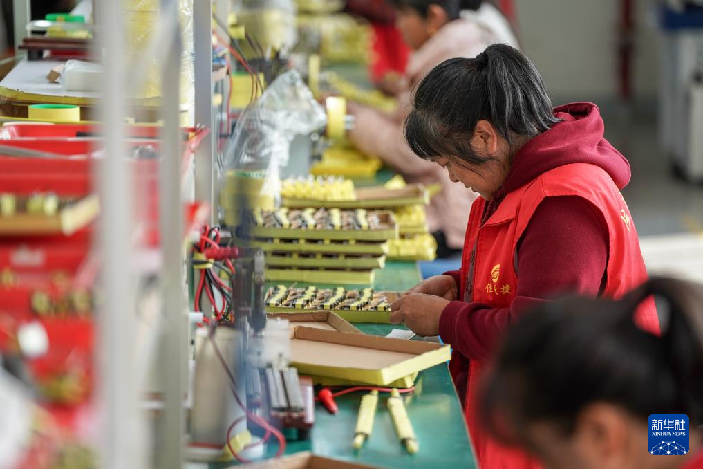 3月25日,工人在以礼街道一家企业生产车间流水线上作业。