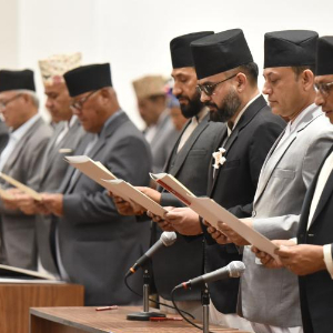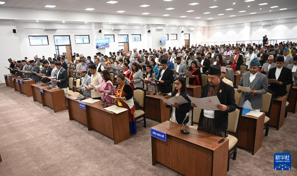 3月26日,在尼泊尔首都加德满都,尼泊尔新一届联邦议会众议院议员宣誓就职。