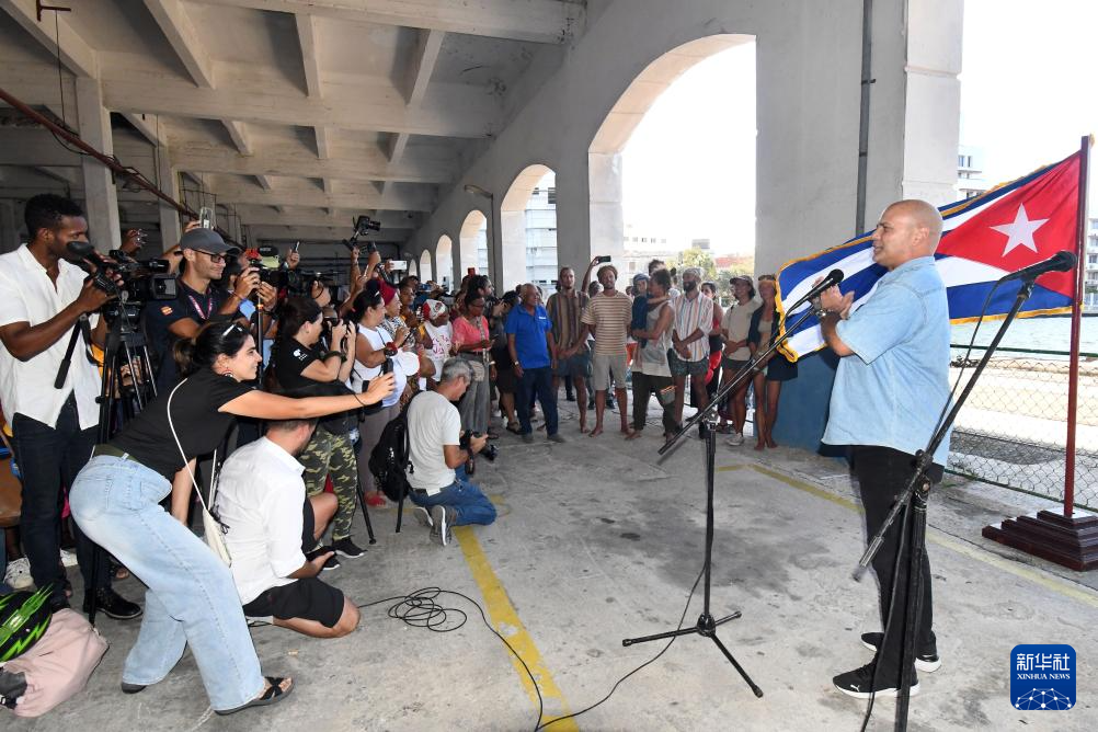 3月28日,在古巴首都哈瓦那,古巴保卫革命委员会国家协调员赫拉多·埃尔南德斯发言对船队到来表示感谢。