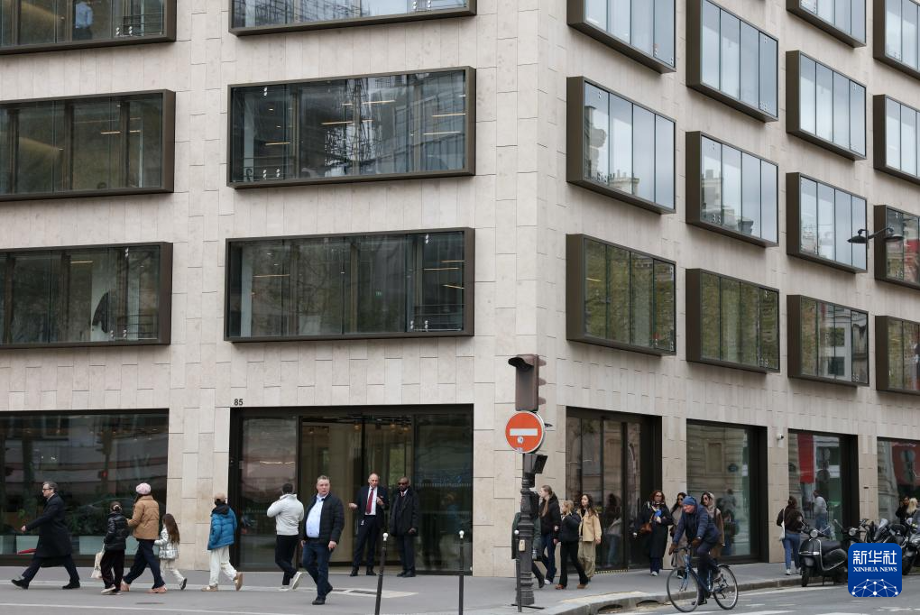 4月2日,行人经过高盛集团在法国巴黎的办公点。据报道,高盛集团在巴黎的办公点4月1日晚收到袭击威胁后,被警方置于监视之下。