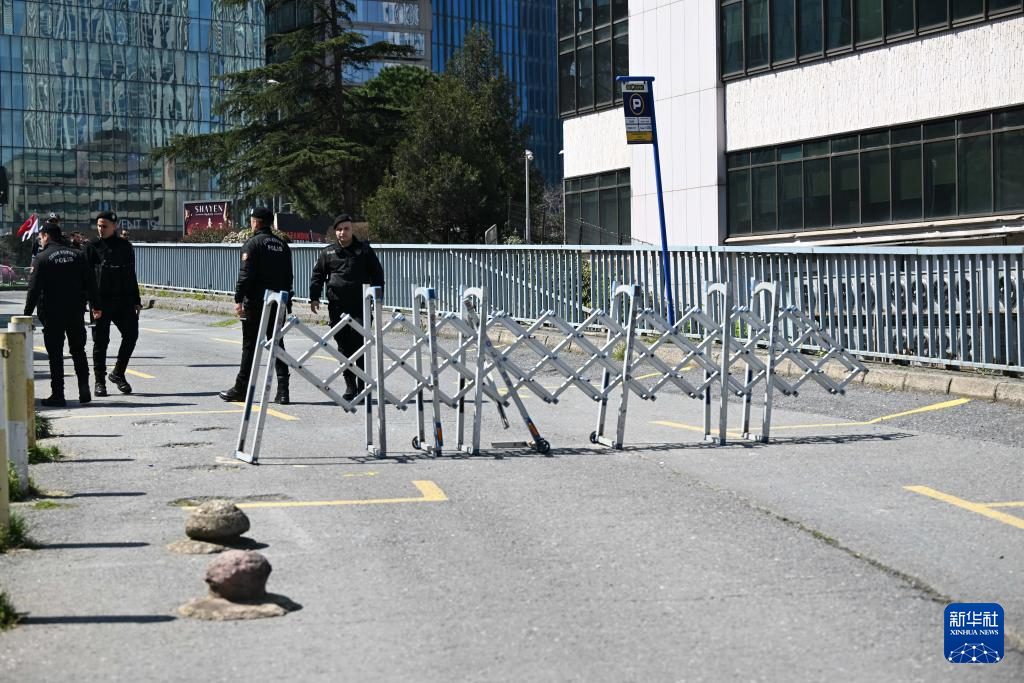 4月7日,警察在以色列驻土耳其伊斯坦布尔领事馆附近的街道上执勤。