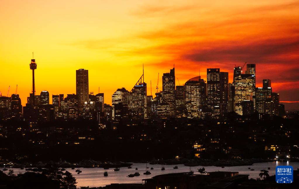 这是4月15日拍摄的澳大利亚悉尼中央商务区黄昏景色。