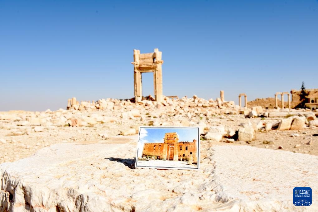 这是2024年11月13日,一张老照片被放置在叙利亚帕尔米拉古城遗址废墟前,对比可见该遗址受到的巨大破坏。叙利亚帕尔米拉古城遗址位于大马士革东北方,是叙利亚境内“丝绸之路”上的著名古城。1980年,该遗址被联合国教科文组织列入世界遗产名录,2013年被列入濒危世界遗产名录。