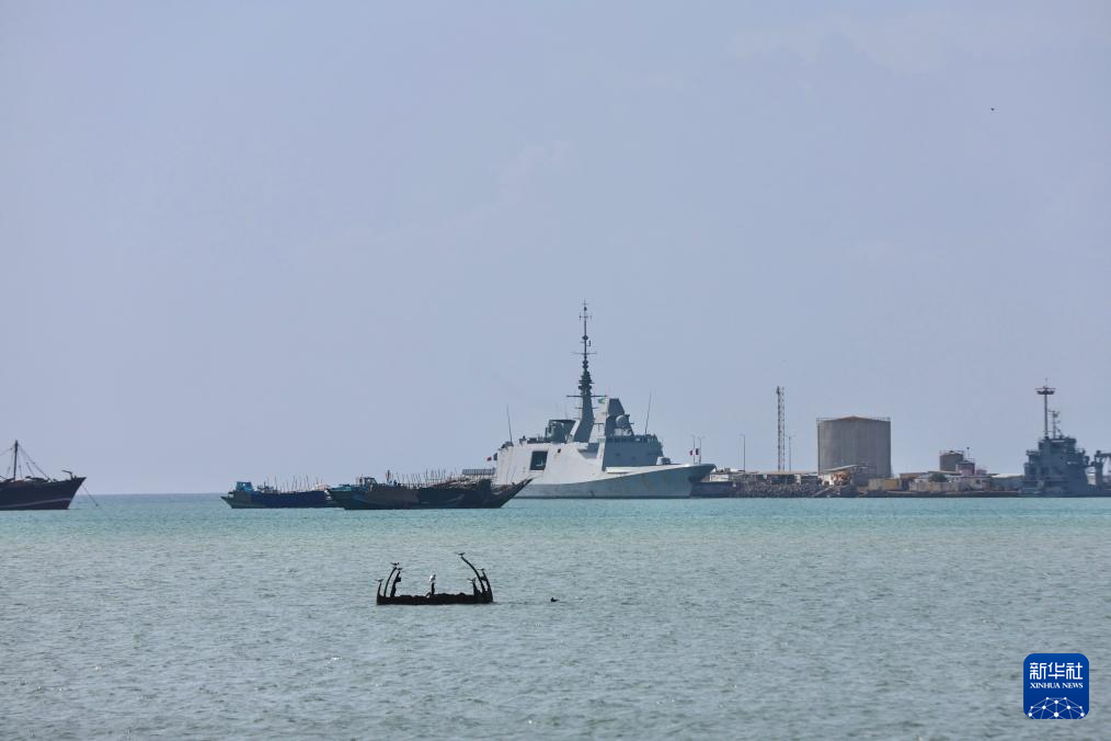 这是4月9日在吉布提首都吉布提市的港口拍摄的一艘军舰。