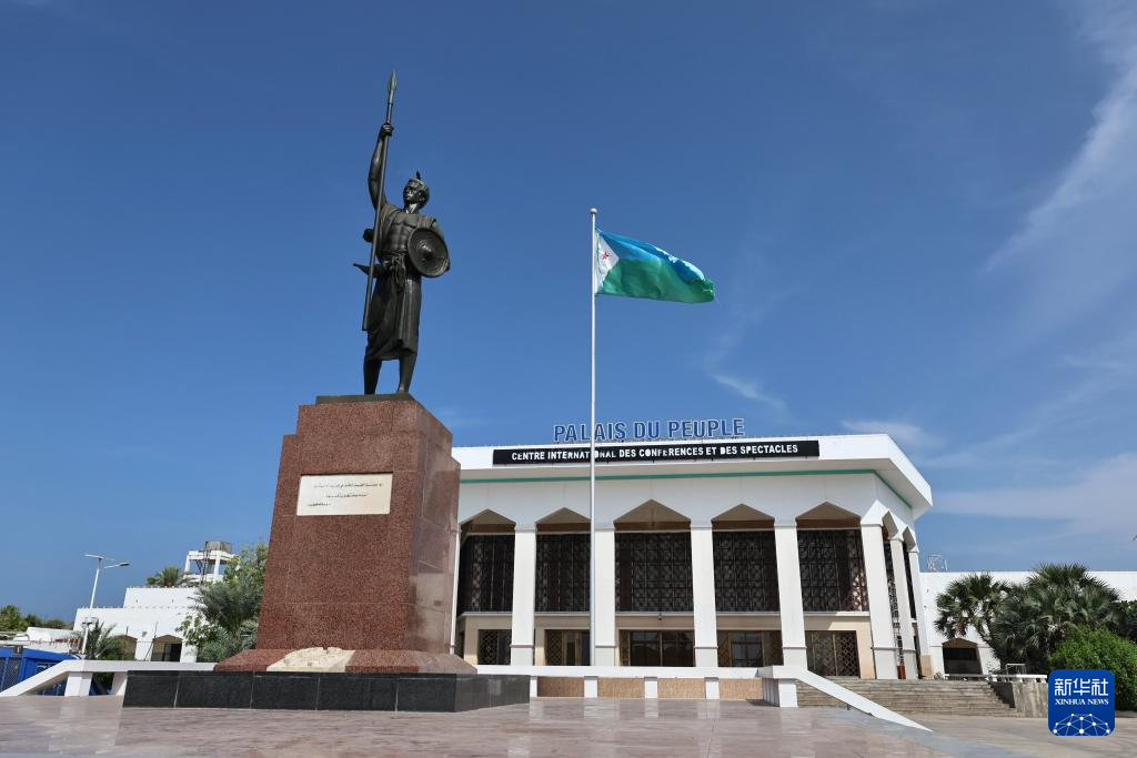 这是4月9日在吉布提首都吉布提市拍摄的人民宫和独立革命英雄纪念碑。