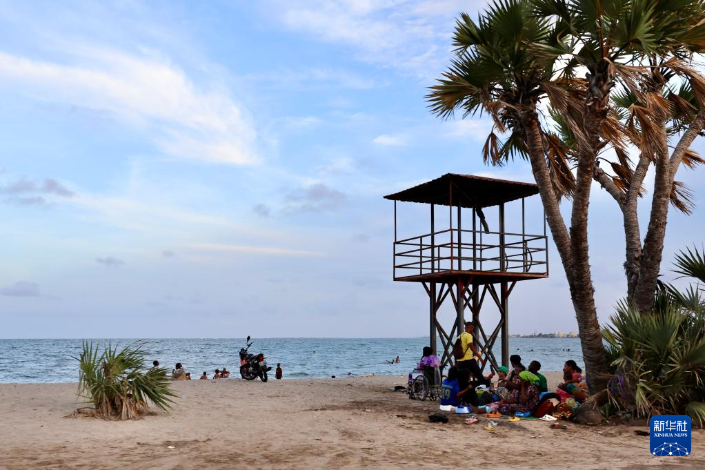 4月11日,在吉布提首都吉布提市,人们在海滨游玩。