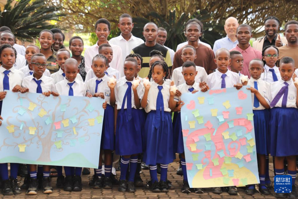 4月19日,在卢旺达首都基加利,当地学生在“国际中文日”文化交流活动上合影。