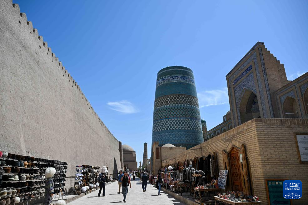 4月27日,人们在乌兹别克斯坦希瓦古城游览。