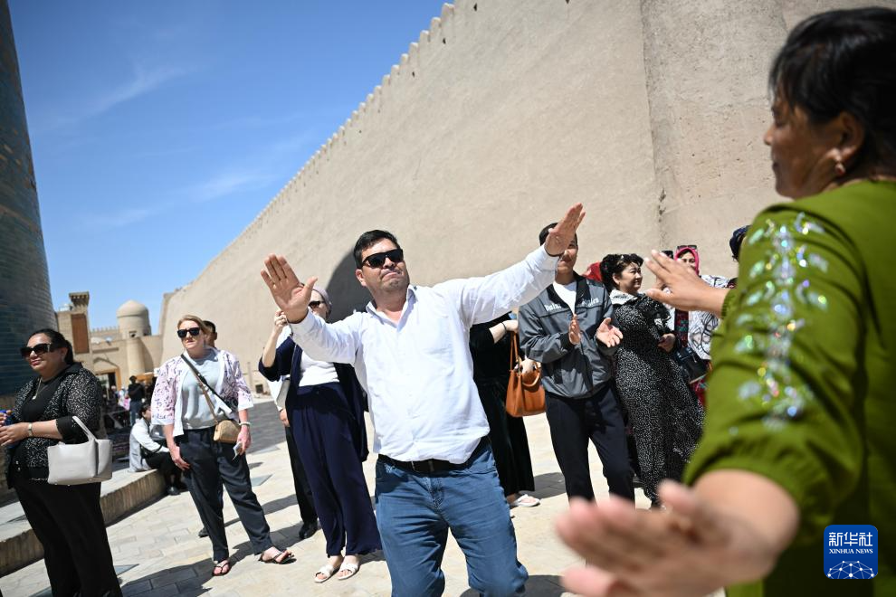 4月27日,人们在乌兹别克斯坦希瓦古城跳舞。