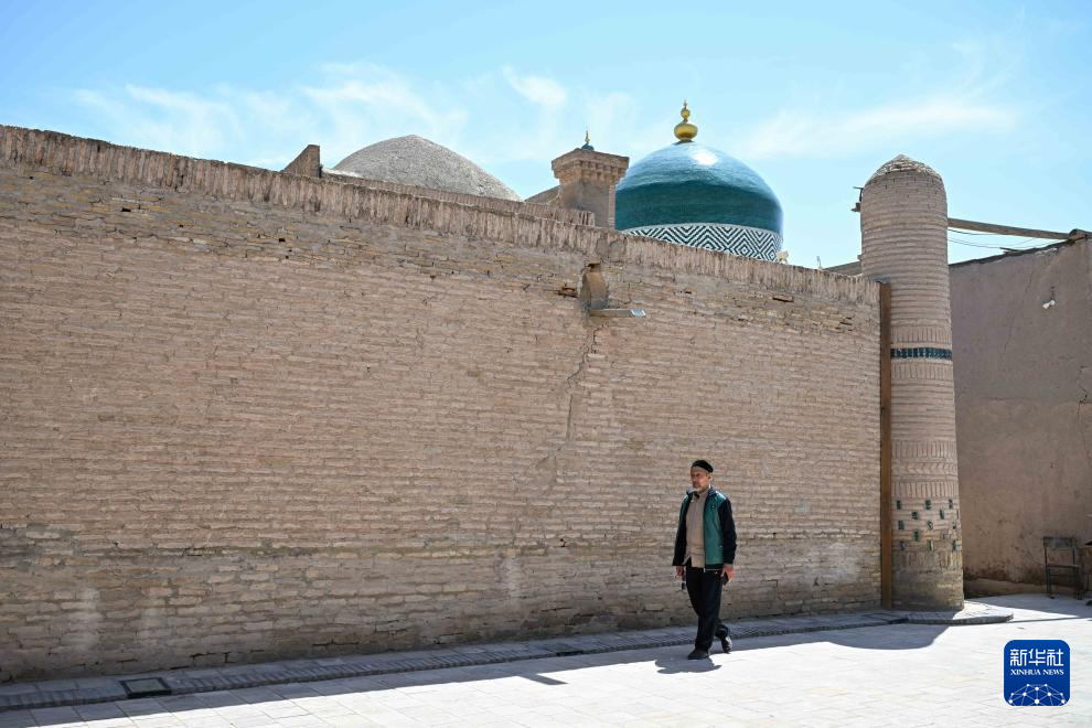4月27日,一名男子走在乌兹别克斯坦希瓦古城内。