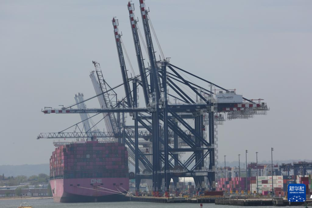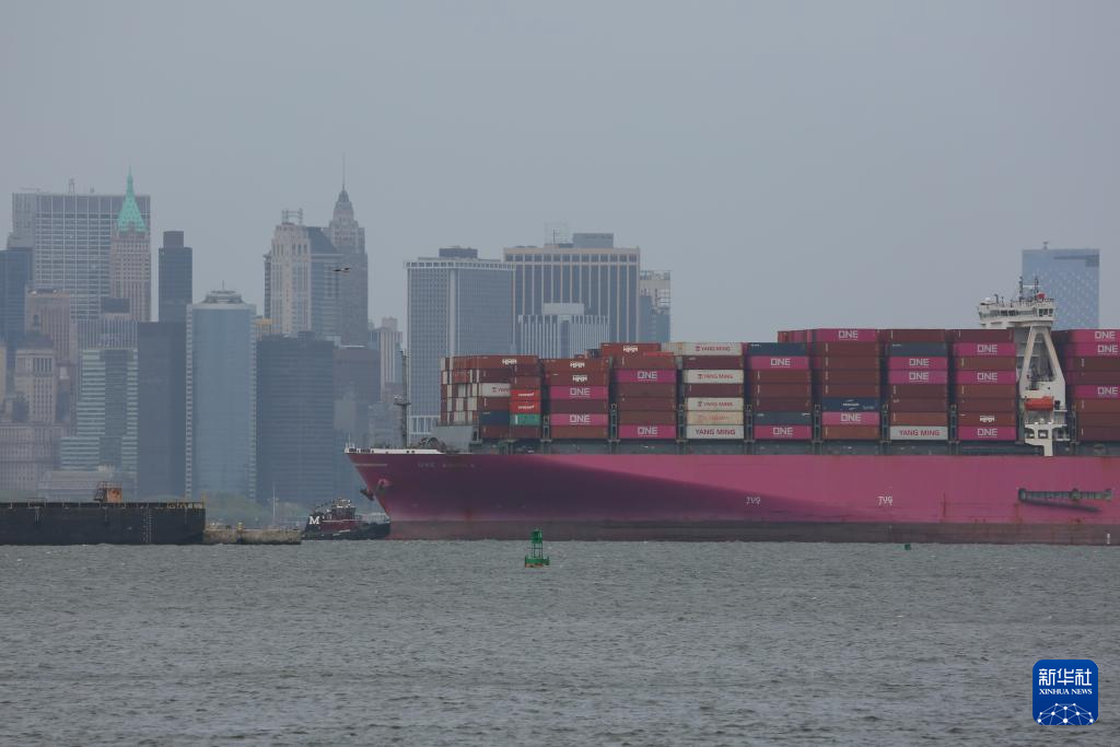4月29日,一艘集装箱船离开美国纽约和新泽西港。