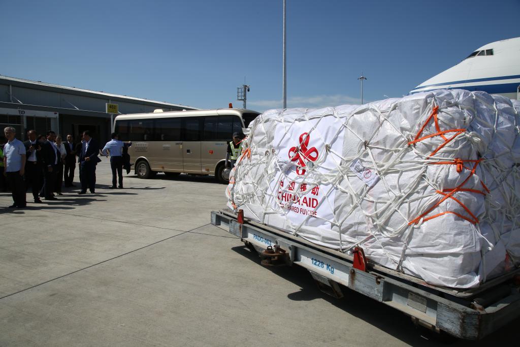 12月28日,首批中国援柬埔寨紧急人道主义物资运抵柬埔寨金边德崇国际机场。