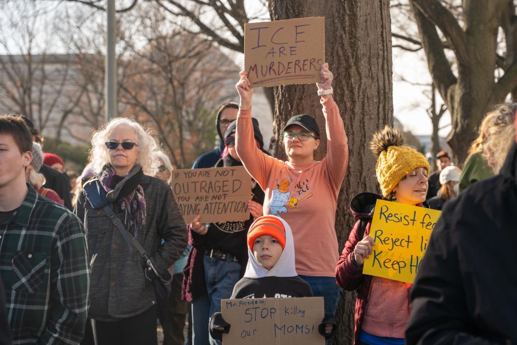 近日,美国多地民众举行游行示威,抗议移民与海关执法局(ICE)执法人员在明尼苏达州明尼阿波利斯市开枪打死一名美国籍女子。