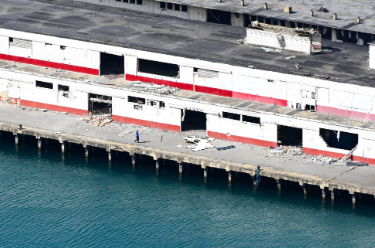 这是1月11日在委内瑞拉拉瓜伊拉港拍摄的美军空袭后的受损建筑。
