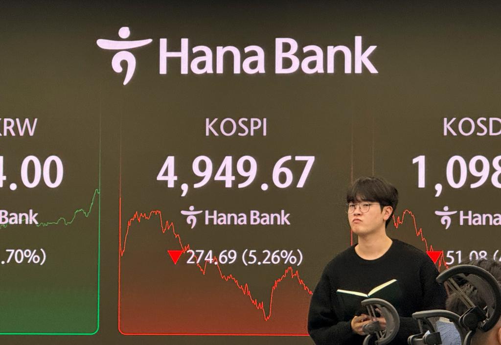 韩国股市2日遭遇重挫,韩国综合股价指数(KOSPI)收于4949.67点,比前一交易日下跌274.69点,跌幅达5.26%,一度启动暂停程序化交易的“临时停牌”措施。