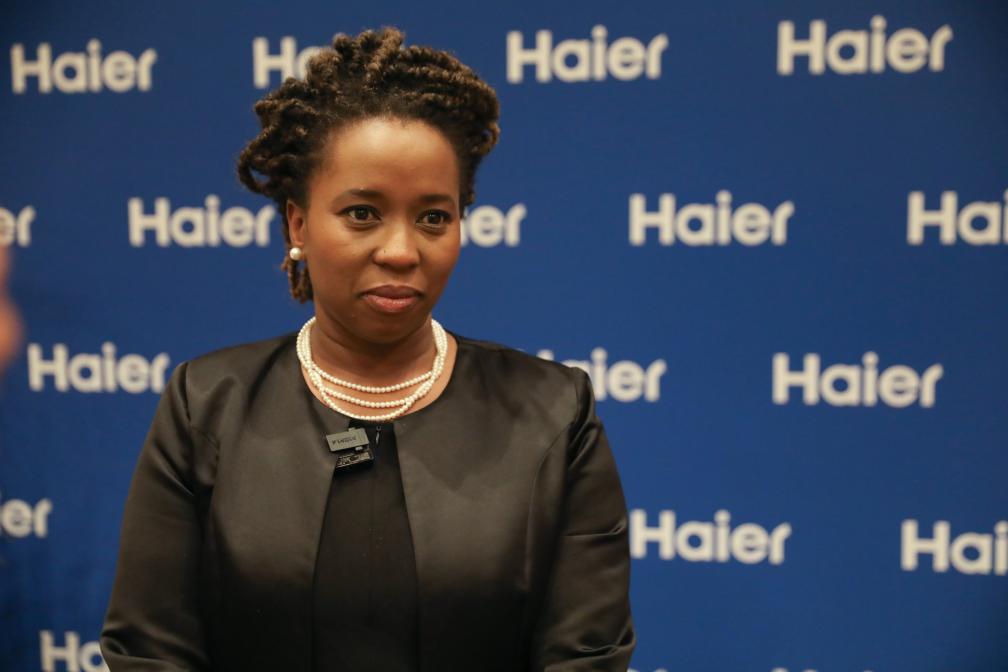 2月2日,在南非约翰内斯堡举行的海尔集团旗下子公司海尔智家产品发布活动上,南非豪登省政府执委会成员武伊斯瓦·拉莫豪帕接受新华社记者采访。
