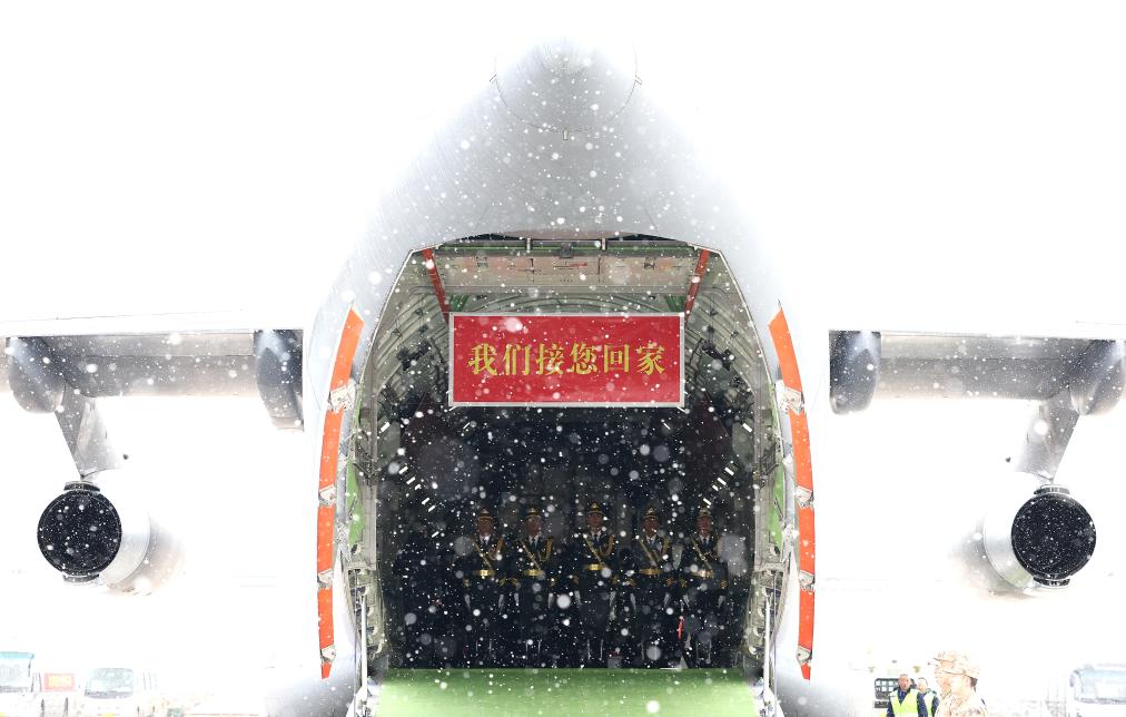 2023年11月23日,第十批在韩中国人民志愿军烈士遗骸抵达沈阳桃仙国际机场。新华社记者曹灿摄