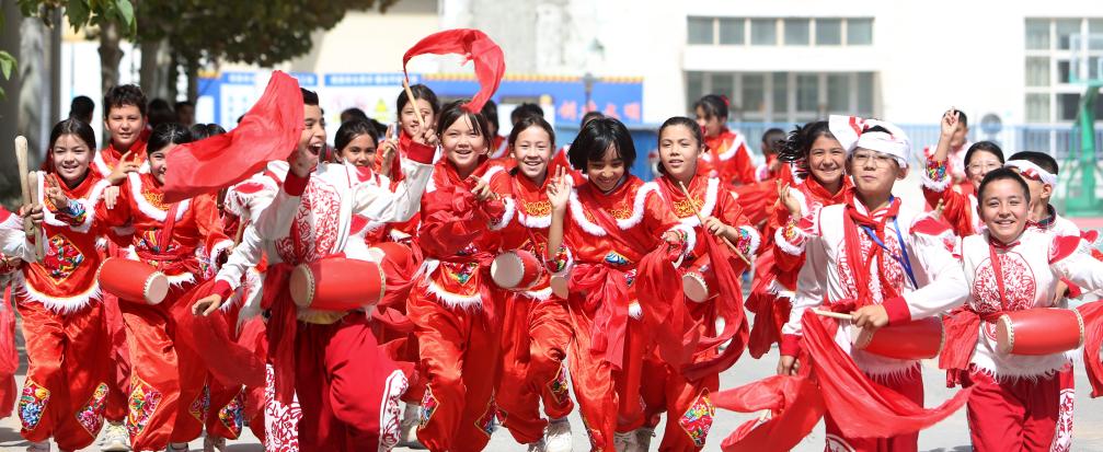 2024年5月30日,云南省曲靖市陆良县文化小学的孩子们在表演节目。新华社发(王勇 摄)