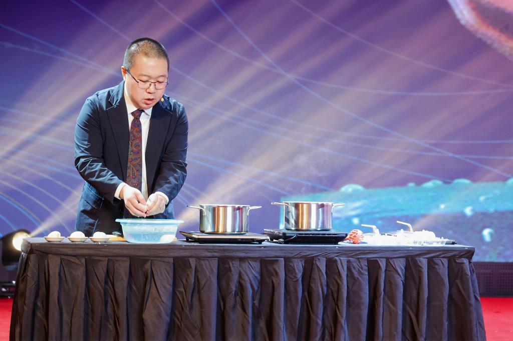 11月22日拍摄的为观众展示煮鸡蛋和蒸鸡蛋化学原理的实验。新华社发