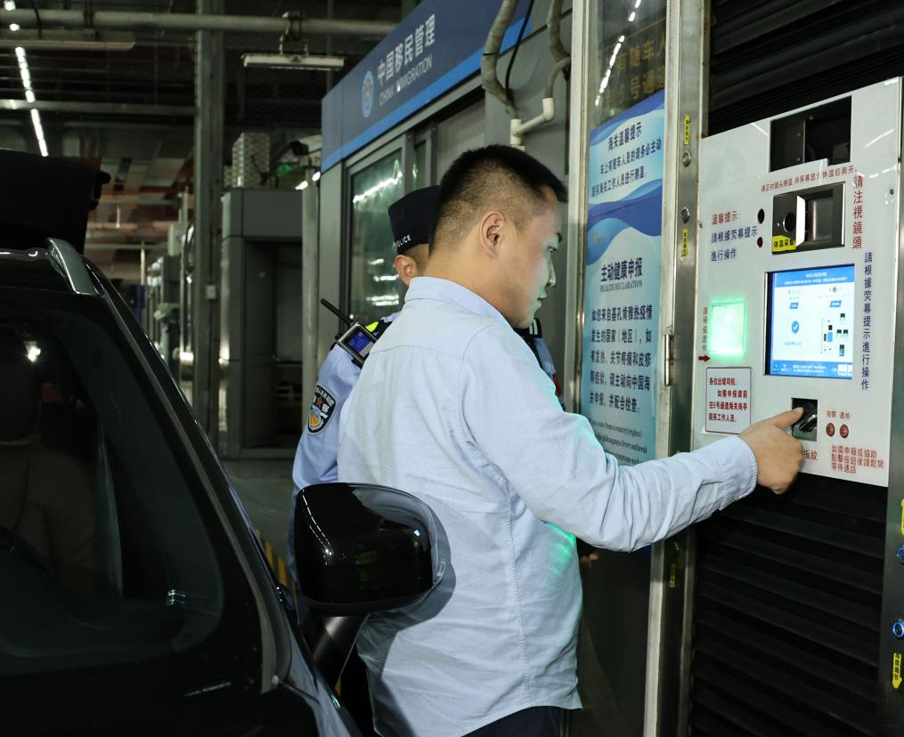 11月15日零时,“粤车南下”首位通关车主周先生在“一站式”通道办理通关手续。新华社记者 黄国保 摄