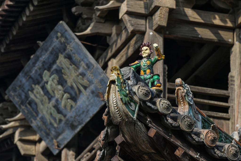这是11月12日在山西省运城市万荣县稷王庙拍摄的古建顶上的装饰构件。
