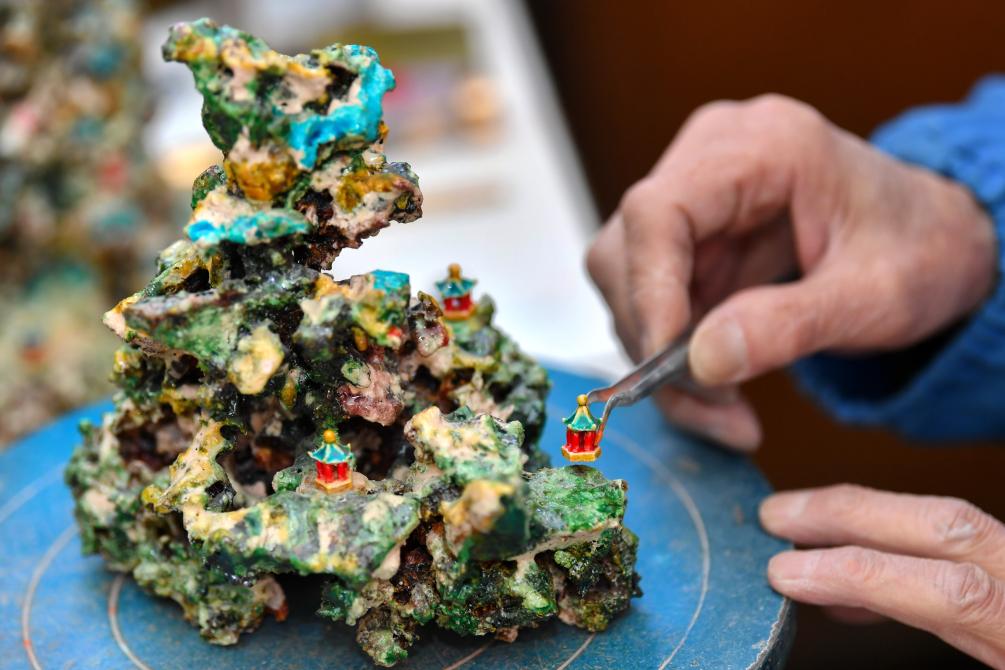 琉璃烧制技艺国家级非遗代表性传承人葛原生在位于山西省太原市的工作室里制作琉璃工艺品。