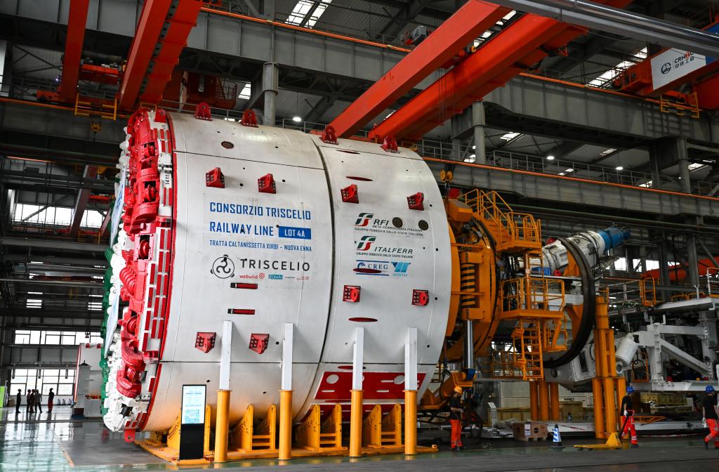 这是6月18日在天津自由贸易试验区天津港东疆片区的中铁工程装备集团(天津)有限公司拍摄的即将出口意大利的盾构机。新华社记者 孙凡越 摄