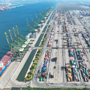 这是11月28日拍摄的洋浦港,是海南自贸港10个“二线口岸”之一(无人机照片)。12月18日,海南自由贸易港将正式启动全岛封关运作。新华社记者 郭程 摄