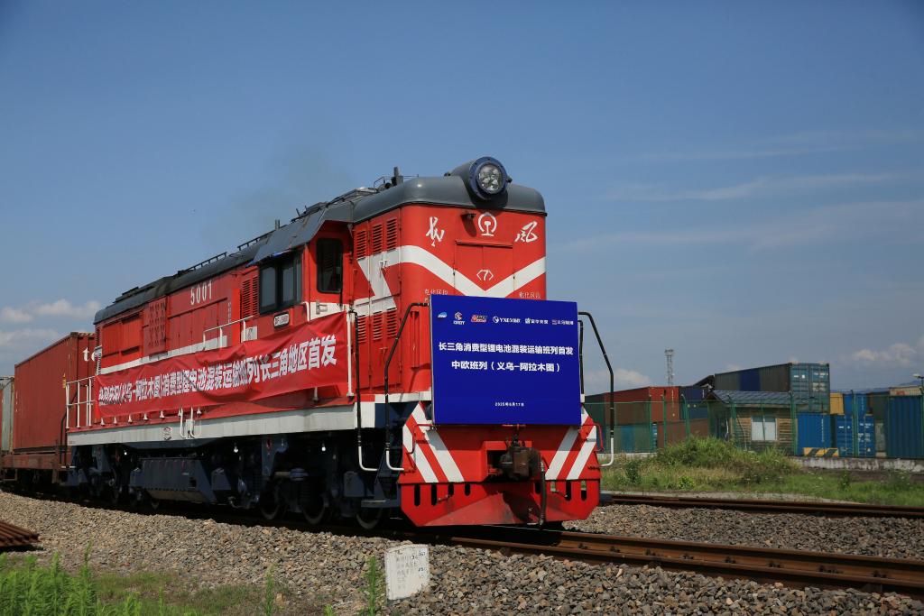 2025年6月17日,长三角消费型锂电池混装运输班列首发。(受访者供图)