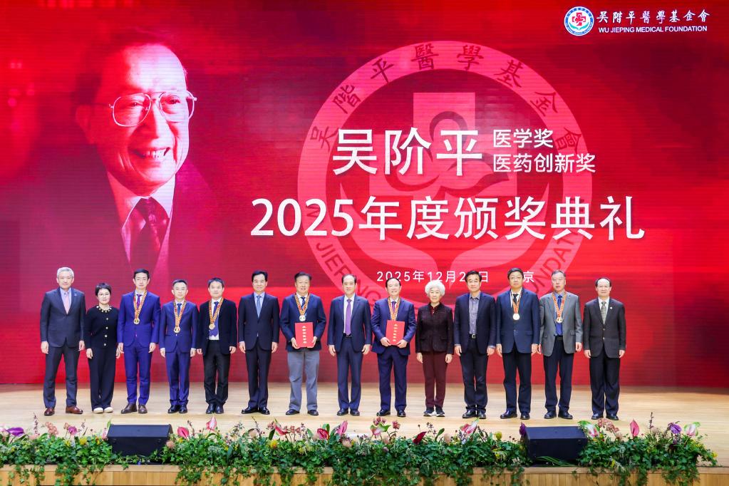 现场被授予2025年度吴阶平医药创新奖的有心血管内科专家卜军、肿瘤外科专家王振宁、耳鼻咽喉科专家刘争、神经内科专家唐毅、临床药理专家崔一民。