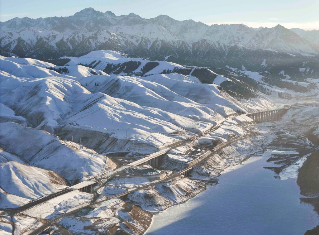 这是在新疆和静县拍摄的乌尉高速公路阿拉沟互通(2025年12月20日摄)。新华社记者 胡虎虎 摄