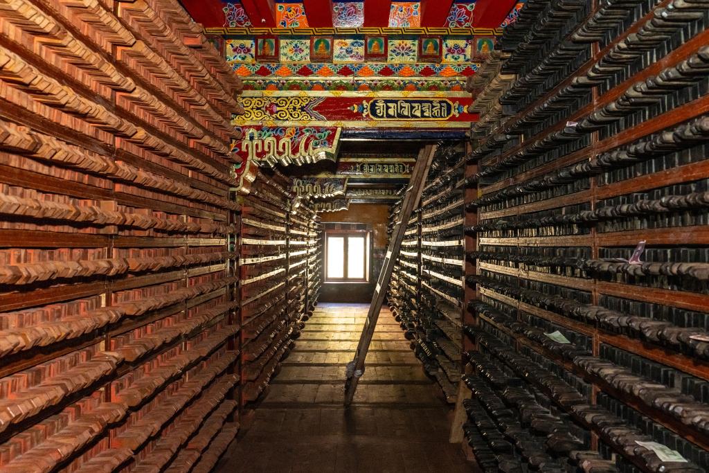 2024年11月2日,在德格印经院拍摄的院藏印版。(新华社记者 沈伯韩 摄)