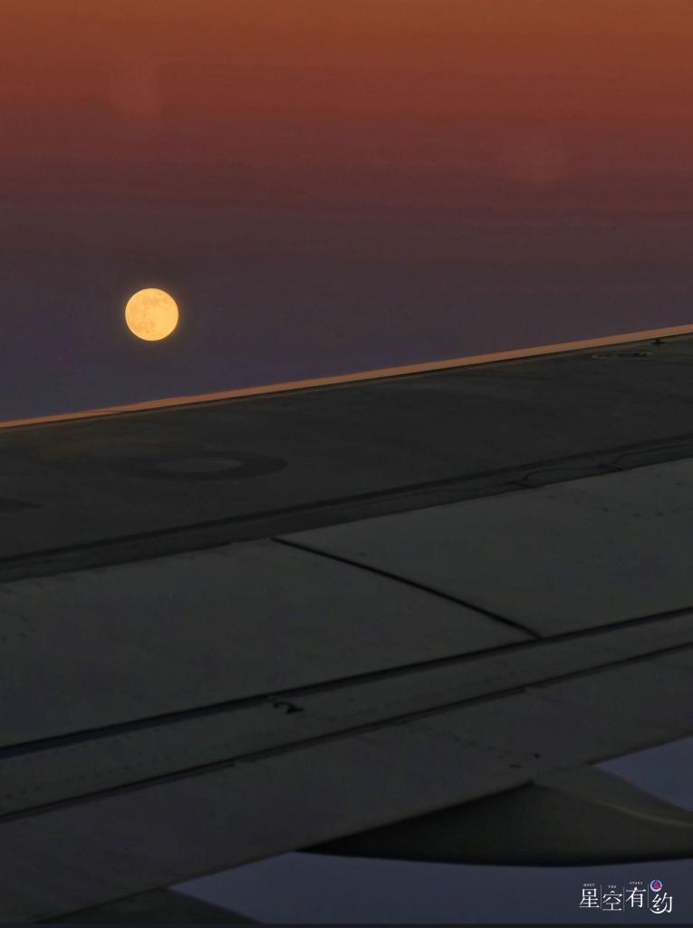 2025年12月5日,在飞行的飞机上拍摄的“超级月亮”。(钟奕 摄)