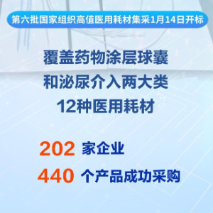 1月14日,第六批国家组织高值医用耗材集中带量采购中选结果公示。此次集采覆盖药物涂层球囊、泌尿介入两大类12种医用耗材,共202家企业440个产品中选,产品选择丰富多元。