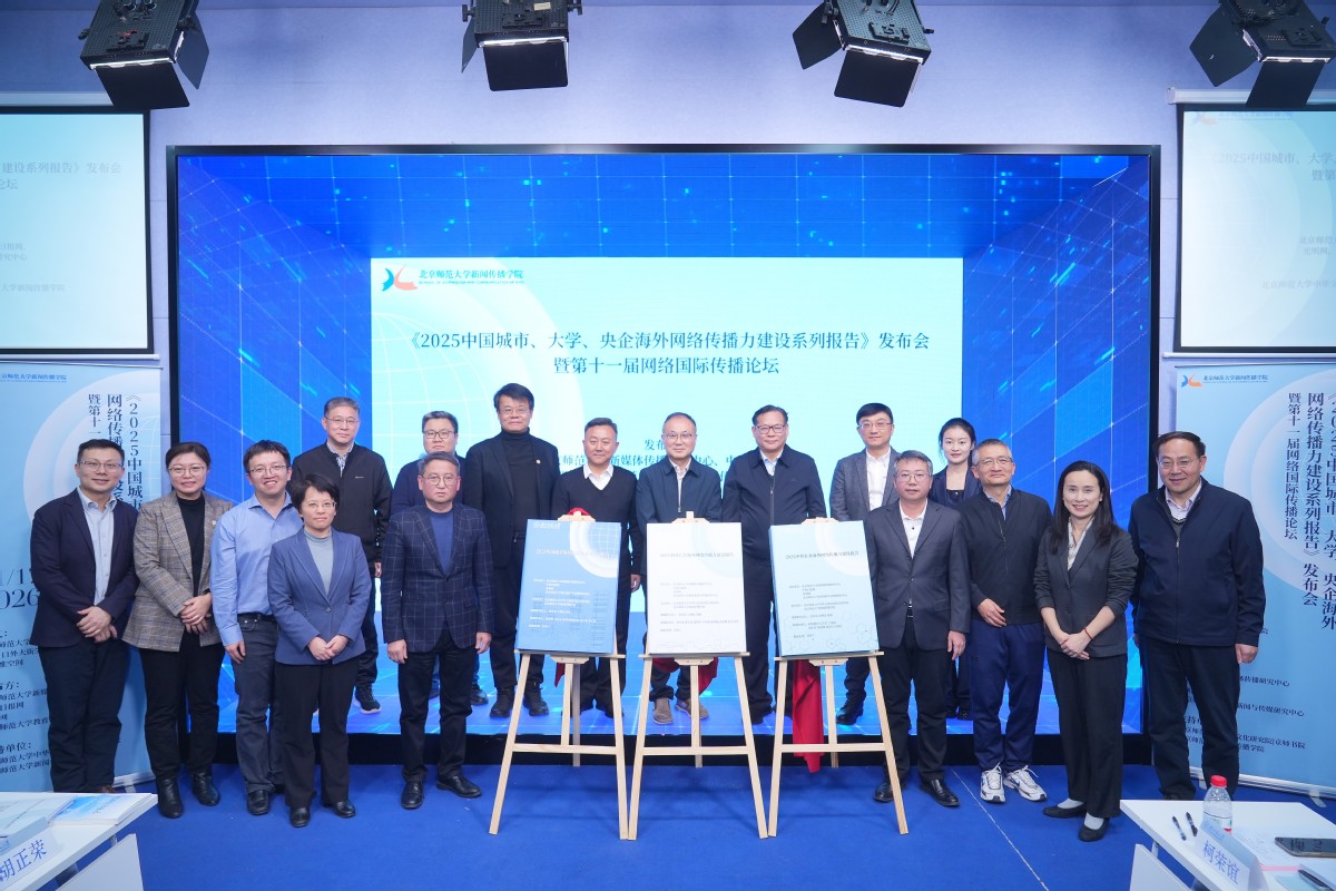 2026年1月17日下午,《2025中国城市、大学、央企海外网络传播力建设系列报告》发布会暨第十一届网络国际传播论坛在北京师范大学举办。该系列报告由北京师范大学新媒体传播研究中心、中国日报网、光明网和北京师范大学教育新闻与传媒研究中心联合发布,北师大京师书院和新闻传播学院支持。