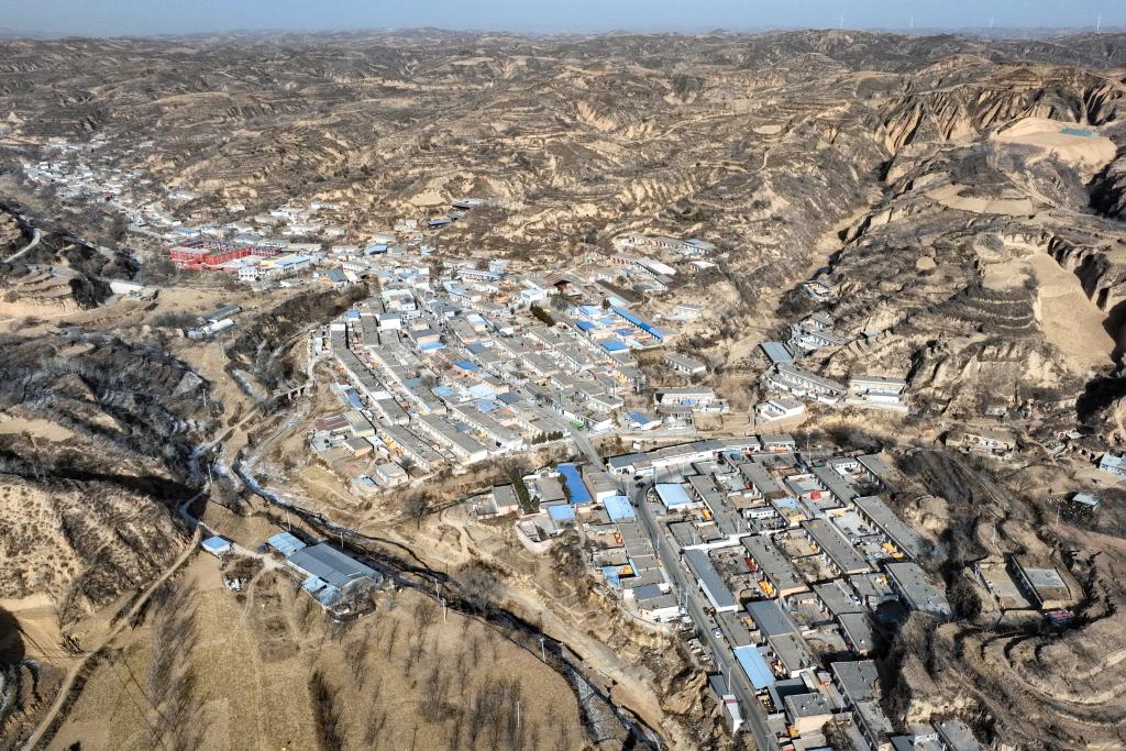 这是1月15日拍摄的山西省吕梁市临县雷家碛乡双井沟村一角(无人机照片)。