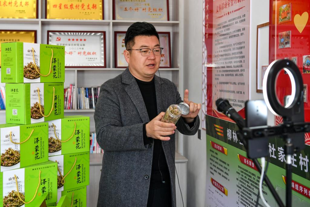 成宇蛟在山西省柳林县留誉镇杜家庄村进行直播带货。