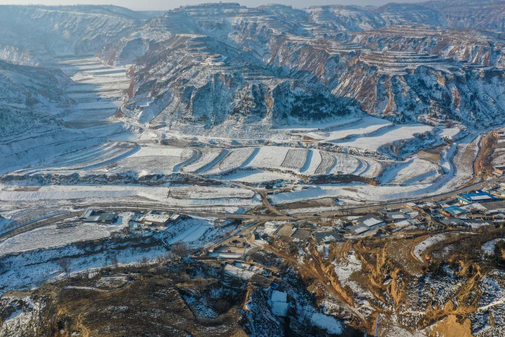 这是雪后的山西省柳林县留誉镇杜家庄村(无人机照片)。