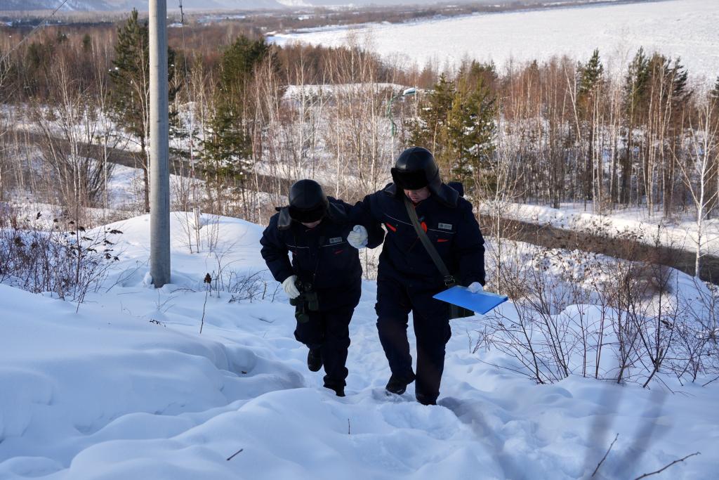 新华社哈尔滨2月6日电(记者张一帆、徐凯鑫)记者和电力工人抵达巡线起点的山脚下时,天空飘起了小雪。接近零下40摄氏度的低温,风夹着雪,刮在身上刺骨的冷。对于漠河供电公司北极供电所所长吕建生和他的同事金建龙来说,这只是冬季巡线工作中寻常的一天。