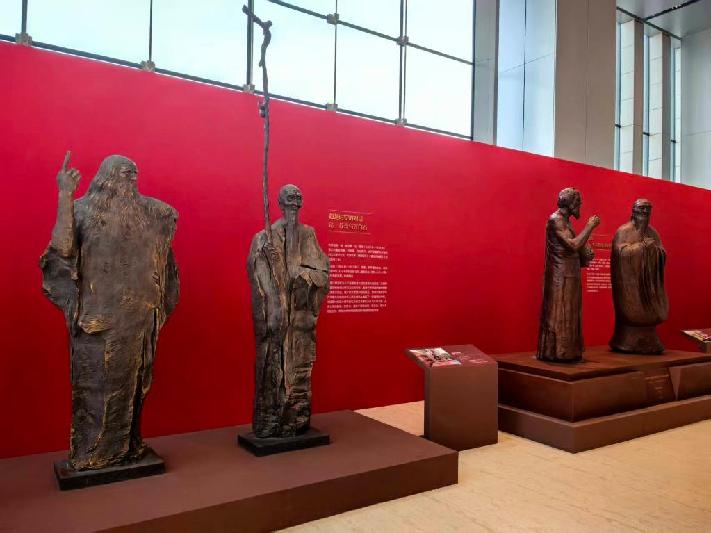 眼前这一座座雕像,塑圣人取其仁厚之魂,眉眼温润、身形端方,将“仁者爱人”的哲思凝于其中;刻诗人抓其浪漫之韵,衣袂翻飞、神态洒脱,以写意线条勾勒“孤鹜落霞”的诗意。塑革命先驱凝其浩然之气,取其最具张力的一瞬,或昂首赴义,或沉着奔走,不屈的意志与信念从劲瘦的躯体中磅礴而出,熔铸为民族危难时的不朽长城。