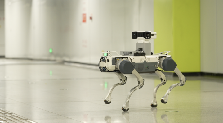 凌晨寂静的地铁1号线云谷路站站厅,传出清脆的“咔咔、咔咔”脚步声,四足巡检机器狗“小维”正在进行关站前的检查,它的红外装置能探测到肉眼难以看到的安全隐患。