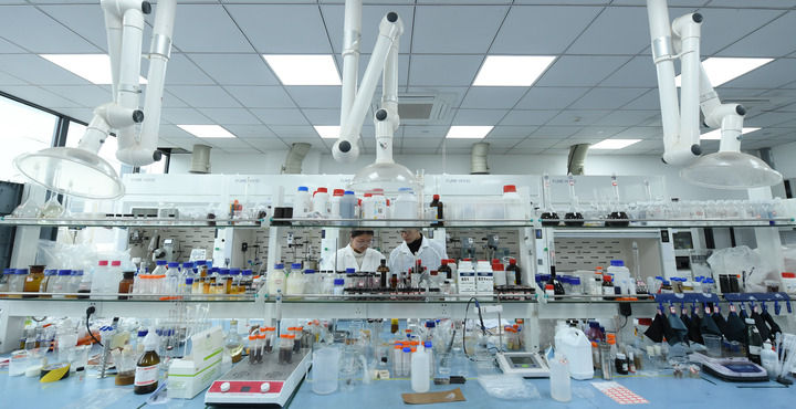 2024年3月15日,科研人员在位于绍兴市柯桥区的浙江省现代纺织技术创新中心(鉴湖实验室)做液体染料合成实验。新华社记者 翁忻旸 摄