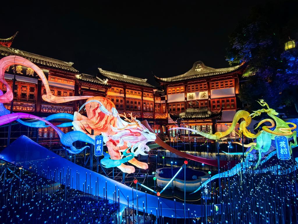 夜幕降临,一条“光影叙事带”在上海市中心冉冉点亮:从豫园商城一路延展至BFC外滩金融中心乃至外滩,精湛的非遗灯彩技艺与前沿的数智光影艺术深度融合,呈现一场传统文化与现代科技交相辉映的沉浸式年俗盛宴,每天吸引了超过10万人次游客前来“打卡”。