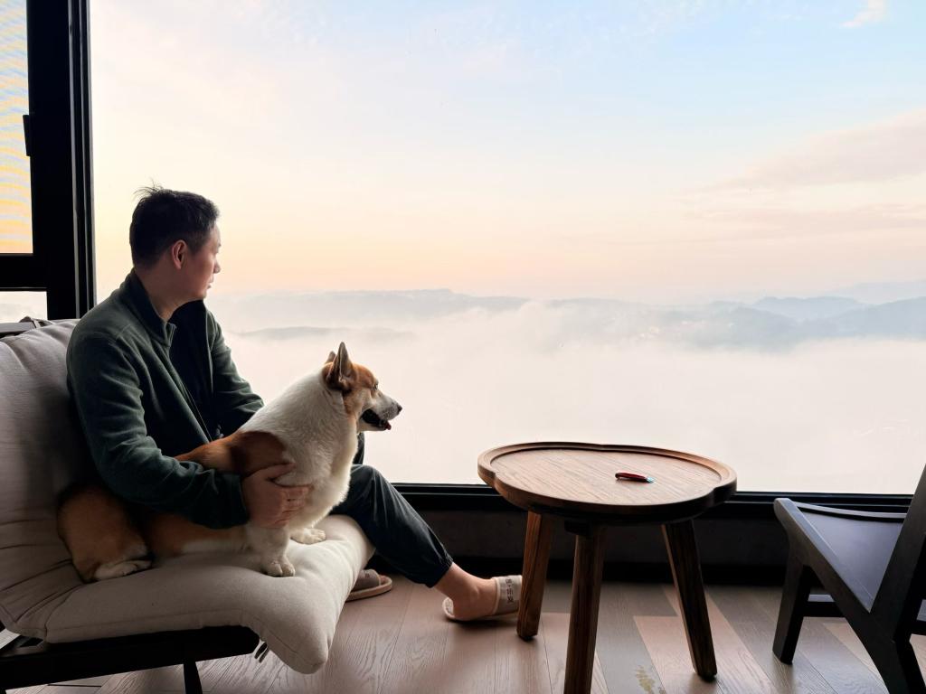 傍晚时分,夕阳洒在下岩贝村的千亩茶园上,云海在山谷间缓缓流动。民宿院子里,主人们围炉煮茶,宠物们在旁边嬉戏玩耍。“在这里过年,感觉特别放松。”来自上海的游客陈先生说,城市里带宠物出门有很多限制,这里空间大、环境好,宠物能自由奔跑,我们也能真正享受假期。