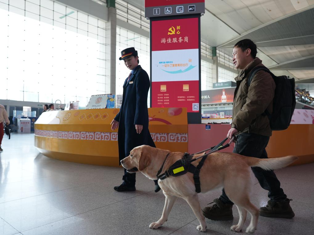 新春走基层丨春运里的温柔守护:导盲犬“拿铁”与视障旅客的暖心旅途-新华网