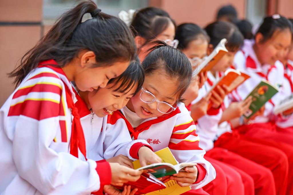 4月22日,天津市滨海新区塘沽实验小学学生在图书漂流活动中阅读图书。新华社发(杜鹏辉 摄)