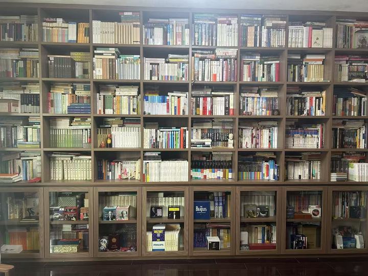 周丹家的书柜放满了各种各样的书籍。采访对象供图